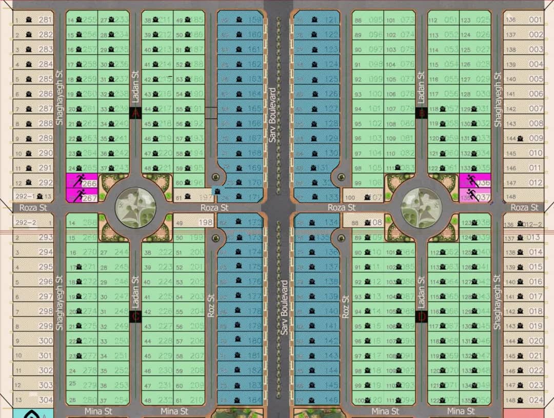 بلوار اصلی با معابر60 متری و خیابان‌های 10 و 12 متری